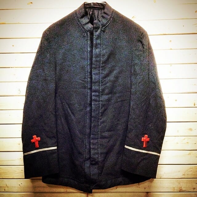 Latest find – this beautiful heavy vintage coat with cuff, border, and sleeve embroidery. Red crosses at the sleeves and the sides flap open at the waist. Amazing! #metropolisvintage #metropolisnycvintage #metropolisvintagenyc
